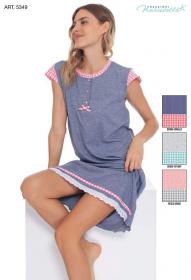 Camicia da notte da donna in cotone 100% leggero e fresco tinta unita melange e bordino in contrasto.