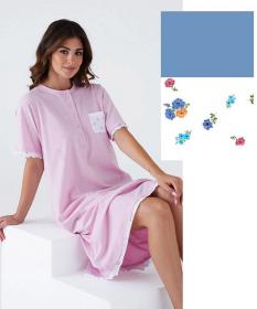 Camicia da notte estiva cotone manica corta tinta unita Karelpiù KC8042