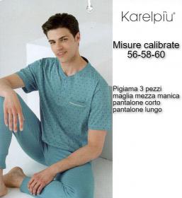 Pigiama calibrato uomo 3 pezzi mezza manica pantalone lungo e corto puro cotone Karelpiu' 8222